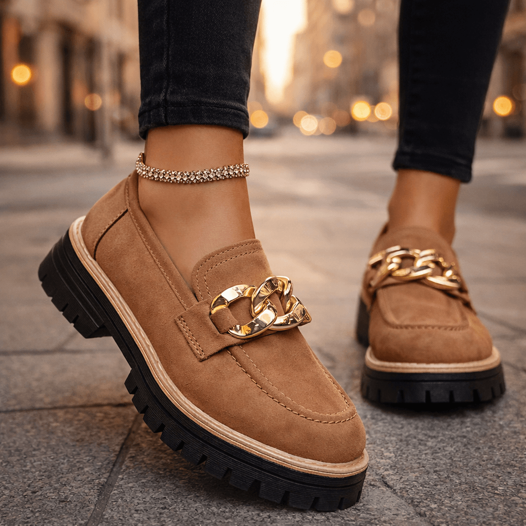 Step into a world of effortless style and all-day comfort with the Sienna Rise Platforms, your new go-to for every occasion! These stunning loafers are designed to make you feel fabulous, whether you're strutting through the city, heading to brunch, or dressing up for a chic evening out. Crafted from soft suede and featuring an eye-catching gold chain detail, the Sienna Rise Platforms™ offer a flattering, elevated look that beautifully complements any outfit.